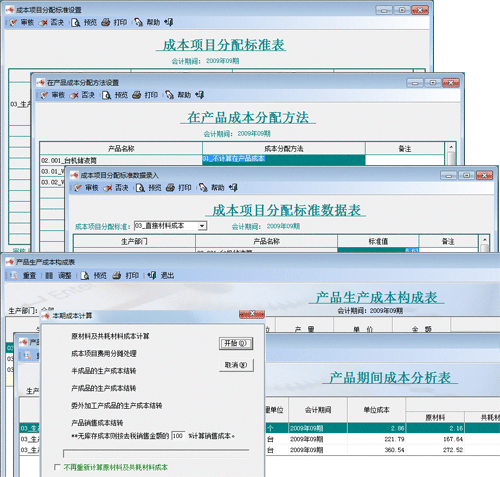 系統(tǒng)自動結(jié)轉(zhuǎn)采購、生產(chǎn)領(lǐng)料、產(chǎn)品入庫、委外加工產(chǎn)品、商品銷售等各項(xiàng)成本。系統(tǒng)能自動將各類業(yè)務(wù)數(shù)據(jù)生成到財(cái)務(wù)系統(tǒng)記賬憑證中。系統(tǒng)提供加權(quán)平均法、個別計(jì)價法、先進(jìn)先出法等成本核算方法,提供成本項(xiàng)目多種分配標(biāo)準(zhǔn)設(shè)置,解決成本項(xiàng)目分配不準(zhǔn)確的問題。自動收集直接材料費(fèi)用及共耗材料費(fèi)用,大大減輕成本核算人員工作負(fù)擔(dān),使成本核算更及時、更準(zhǔn)確。豐富的成本報(bào)表體系,加強(qiáng)了企業(yè)對各類成本的監(jiān)管與分析能力。