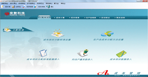 成本管理系統(tǒng)是各子系統(tǒng)數(shù)據(jù)無縫連接的核心,主要包含了分配標(biāo)準(zhǔn)管理、成本計(jì)算、成本報(bào)表管理、在產(chǎn)品報(bào)表管理、自動制證管理、期末結(jié)轉(zhuǎn)、成本預(yù)測管理等功能模塊。